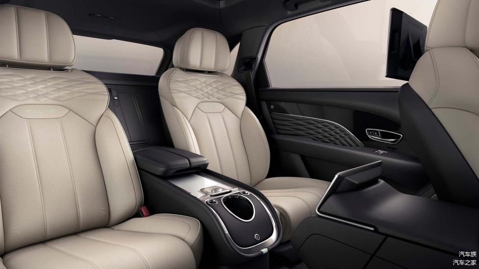 车内座椅采用菱形衍缝,辅以反衬色缝线和钢琴漆饰面镶边。头枕上新增“Atelier Edition”标识。座椅具有舒逸坐姿功能,通过内部气囊,调节对用户身体不同部位的支撑力度,缓解久坐不适感。此外,自正式轮毂盖、宝石油箱盖、氛围灯、宾利流光菱形格套件以及五座舒适套件等选装配置成为标配。