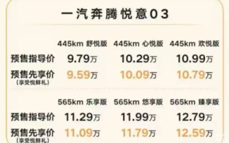 3月5日, 奔腾悦意03(图片 | 参数 | 询价)正式开启预售,预售价区间为9.79万-12.79万元,并且目前下订还可享受2000元优惠及一系列丰富的预售期权益,包括至高价值10000元置换补贴、8万24期0息贷款、终身免费保养、终身免费基础流量等,对于消费者而言,这无疑是一个极具吸引力的选择。