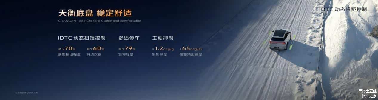 它搭载了天衡底盘,同级唯一CDC智能魔毯悬架、IDTC动态扭矩控制系统等先进技术,提前15m识别路面,10毫秒主动预调节,百公里时速制动距离35m。具有高效制动、转弯矢量控制等功能,指哪儿打哪儿,操控随心,全面升级驾乘舒适性、稳定性、安全性。