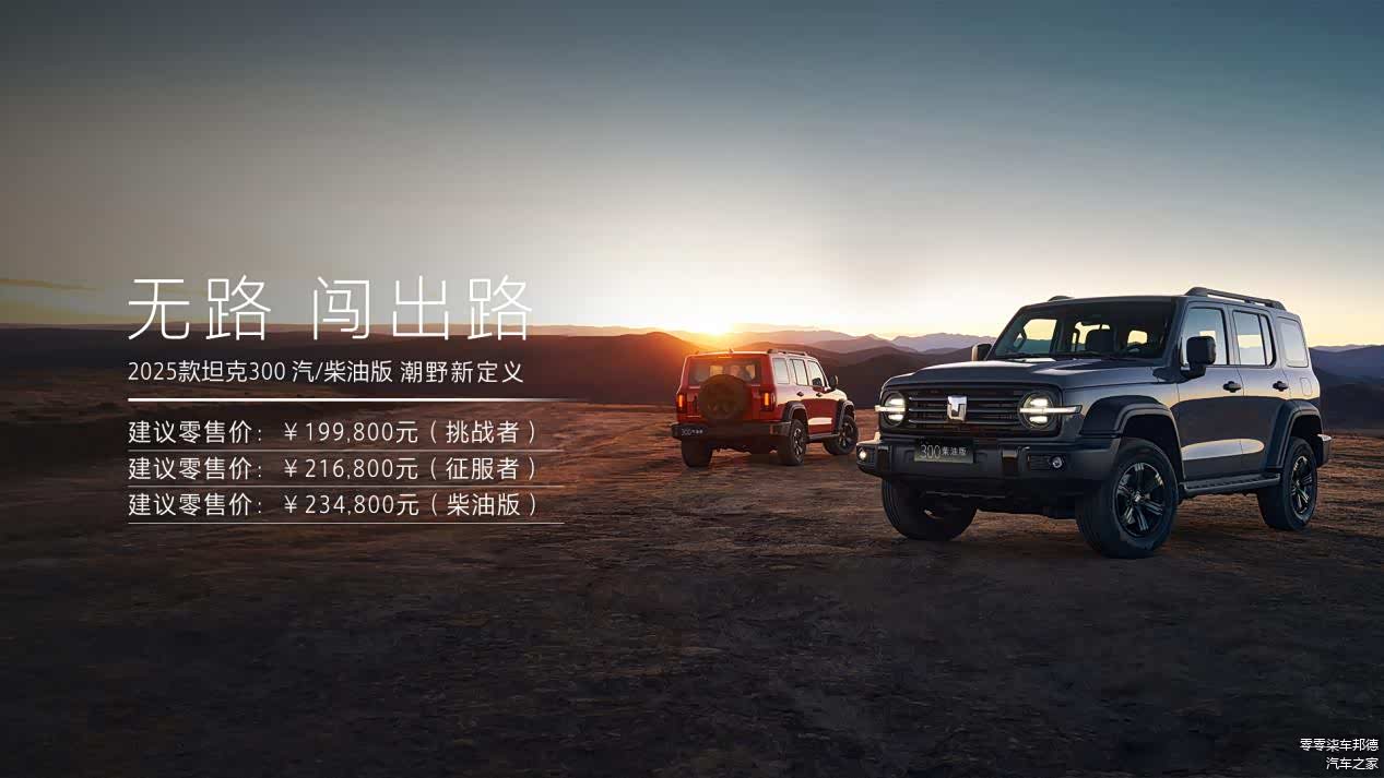 近日,2025款 坦克300(图片 | 参数 | 询价)于珠海横琴文化艺术中心上市。2025款坦克300 Hi4-T官方指导价24.98万元,2025款坦克300柴油版官方指导价23.48万元,2025款坦克300挑战者官方指导价19.98万元,征服者官方指导价21.68万元。目前购车还拥有多重限时权益,可享3000元定金抵6000元购车款的超值定金膨胀礼和至高10000元置换增购补贴无忧礼,此外还有质保、保养、网联、救援和Hi4-T充电服务等五重福利。那么这款车型的用车成本是多少呢?今天零零柒车邦德就来和大家一起聊一聊。