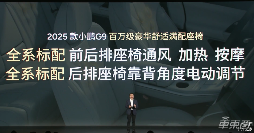 ▲2025款小鹏G9全系标配座椅通风、加热和按摩