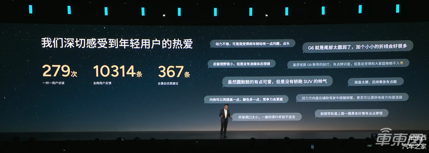 何小鹏在现场用续航长、里程实、充电快、智能强、空间大、超安全这六个特点来概括新车的重点提升方向。