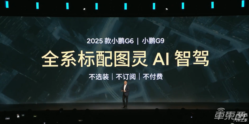 ▲小鹏2025款G6/G9全系标配图灵AI智驾