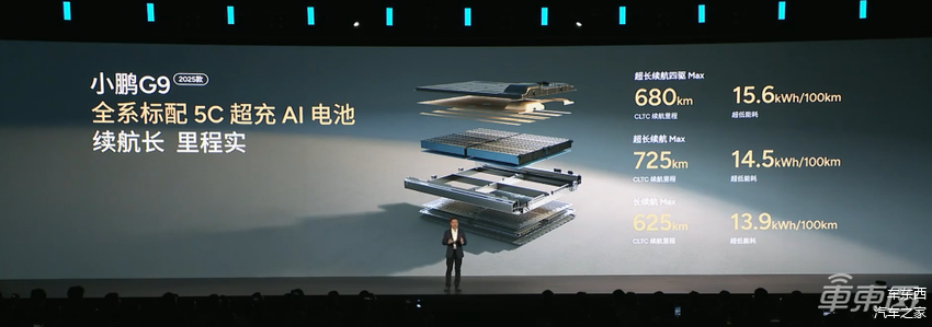 ▲2025款小鹏G6/G9标配5C超充AI电池
