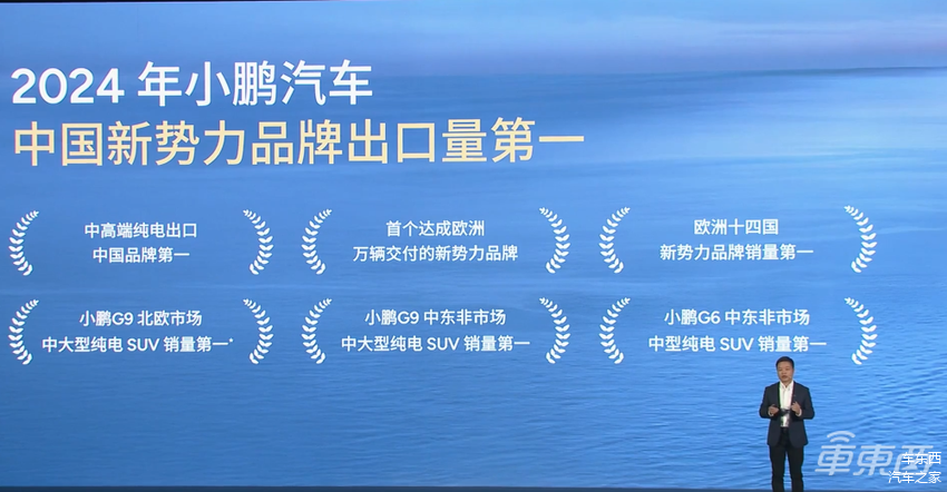 ▲2024年小鹏汽车中国新势力品牌出口量第一