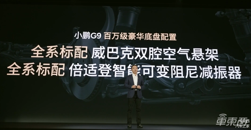 ▲2025款小鹏G9全系标配威巴克双腔空气悬架和倍适登智能可变阻尼减振器