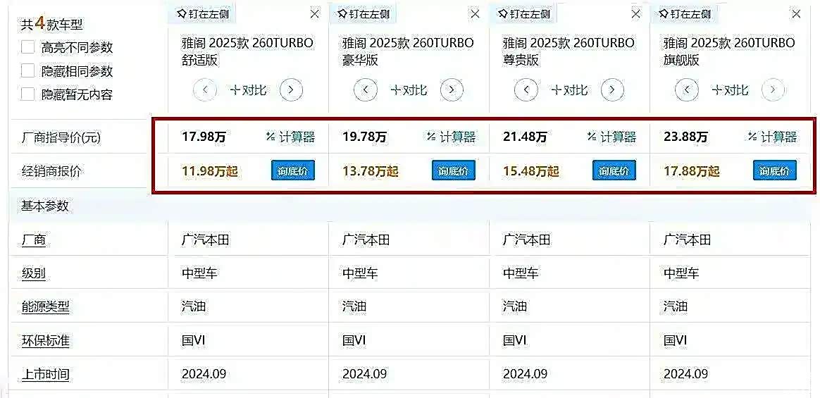 雅阁的新款车型在动力配置上仍然采用了1.5T涡轮增压发动机,其最大功率可以达到192马力,而最大扭矩为260牛·米。此外,它还配备了CVT无级变速器,展现出了卓越的动力性能。不管是在城市间穿梭还是在高速道路上行驶,都能轻松应对。雅阁的1.5T发动机在功率上超越了同级别的大众迈腾,为驾驶者带来了更为热烈的驾驶感受。另外,目前的11代雅阁在市场上的售价已经下降到大约12万元,其性价比相当高。如果新款雅阁能够维持其价格上的优势,并因其卓越的动力表现和亲民的定价,它有可能成为市场上的新宠,并赢得更多消费者的喜爱。