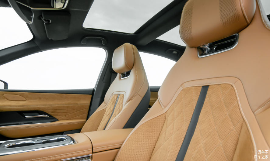 侧面姿态优雅,平直的腰线拉伸整车视觉长度,车窗、侧裙等细节处采用黑化处理,营造出运动气息。19英寸多幅式轮毂采用银黑双色搭配,进一步凸显出运动气息。尺寸方面,4921mm×1890mm×1485mm,轴距达到了2895mm,这样的尺寸不仅看着霸气,也能能够充分满足家庭用车的空间需求。
