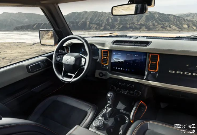 内饰方面,福特烈马大沙丘限量定制版同样延续了“沙丘烈焰”主题风格。座舱细节覆盖了烈焰橙同色缝线,空调出风口、扶手、安全带等关键部位也都采用了同色点缀,整体氛围非常热烈。中控饰板上还雕刻了赛场方格旗与飞溅沙砾元素,与车身拉花相呼应,细节处理得非常到位。座椅采用了Dynamica超纤仿麂皮材质,肩部位置还有“FORD BRONCO”字标点缀,既舒适又显档次。后排座椅经过优化设计,靠背角度更舒适,长时间行驶在非铺装路面上也不会觉得累。