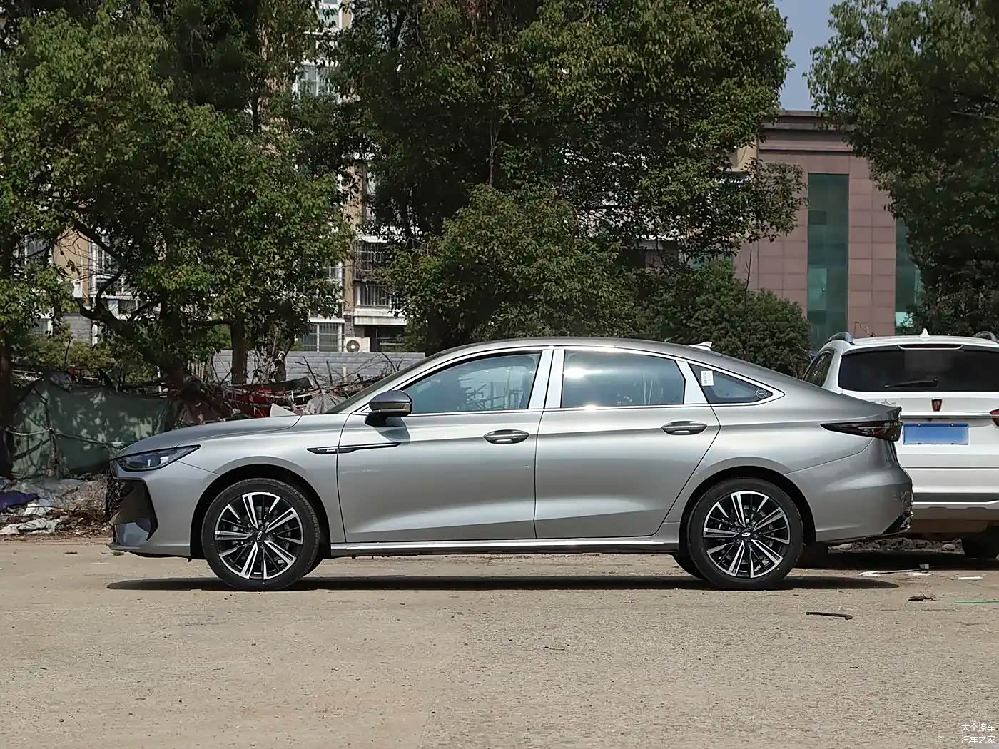 仔细观察新车的侧面设计,你会发现车身呈现出一种低矮且修长的形态,车顶的下滑式设计赋予了它轿跑式的外观,这进一步突显了新车的运动定位。车窗周围则装饰有镀铬饰条以增强其精致感。车门部分的腰线设计非常流畅,从前方的叶子板一直延伸到尾灯,与车门把手的连接形成了一个连贯的整体造型,使得车身看起来更加修长和整体感十足。此外,车门底部的内凹造型设计也增强了车身的层次感。