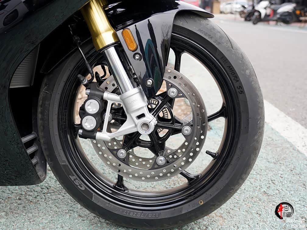 硬件方面,减震系统采用预载、阻尼可调倒置前叉,后悬架为带气瓶多段预载、阻尼可调中置减震,都来自渝安品牌,中高配车型带有转向阻尼器,进一步提升操控稳定性。刹车系统采用前后盘刹,前轮配备双盘四活塞卡钳,后轮为单盘双活塞卡钳(中高配),并配备双通道ABS制动及弯道ABS(中高配),标配TCS牵引力控制系统,能够在车辆加速时防止车轮打滑,提高车辆的稳定性和安全性。
