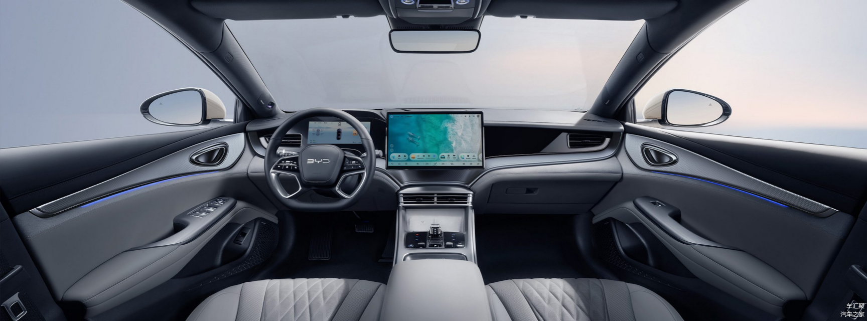 最后来看看海豹07 DM-i,它的外观运用海洋美学设计理念,“海浪无界格栅”设计新颖,不仅增加了前脸的层次感,还拉伸了视觉宽度。“溜背”车身搭配大轮毂,营造出强烈的运动感,深受年轻人喜爱。车内采用大量皮革、真木装饰板等材质,质感十足。环拥式真皮座椅软硬适中,包裹性和支撑性出色,支持多向电动调节,具备通风、加热功能。配置方面,15.6英寸自适应旋转悬浮Pad、10.25英寸全液晶仪表以及W-HUD抬显,搭配8/12个扬声器组合的丹拿音响系统,科技感与舒适性兼备。