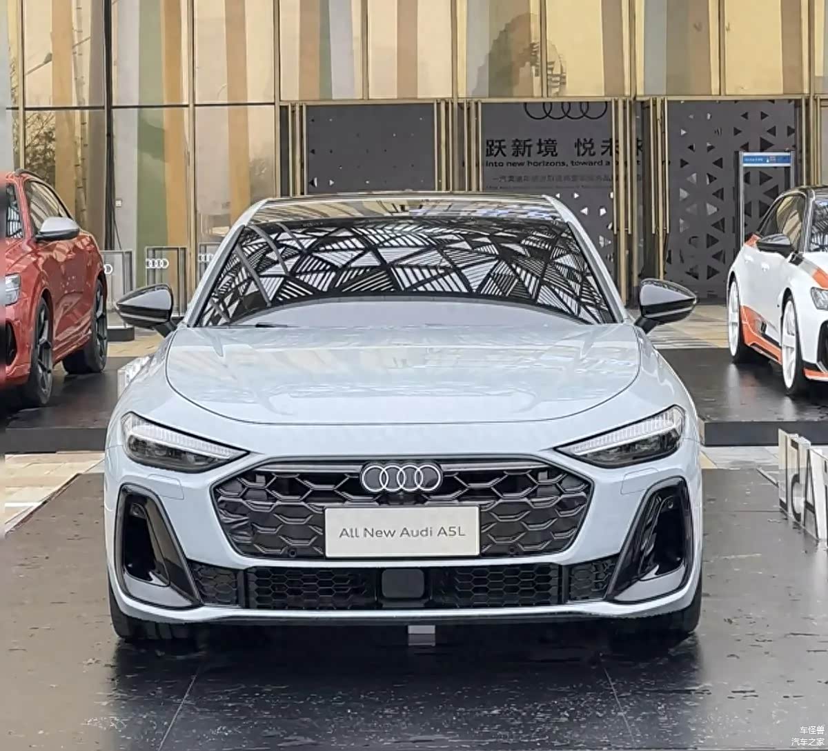 全新的奥迪A5L采用了"动感基因进化论"的理念来重新定义豪华轿跑的审美!该车的前脸设计采用了家族最新的多边型暗黑星辉格栅,中央的四环徽标上方嵌入了贯穿式光带,与矩阵式激光大灯共同构成了一个数字化的视觉矩阵,使得在夜间点亮时,它就像一艘星际战舰,充满了未来感。前杠的设计采纳了三段式的空气动力学原理,其梯形的主要进气口与两侧的獠牙式导风槽共同形成了一个性能组合拳,再加上引擎盖上隆起的筋线,成功地将运动基因充满。