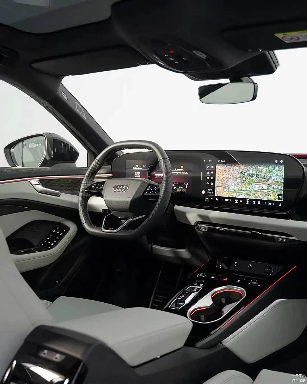 新车采用全新家族设计语言,头灯组通过数字化LED技术实现动态灯光效果,配合标志性的六边形进气格栅,形成极具侵略性的前脸造型。0.25Cd的超低风阻系数不仅优化燃油经济性,更体现奥迪在空气动力学领域的深厚积累。运动版车型通过熏黑套件与红色卡钳的视觉组合,精准切入年轻消费群体需求,形成差异化产品矩阵。