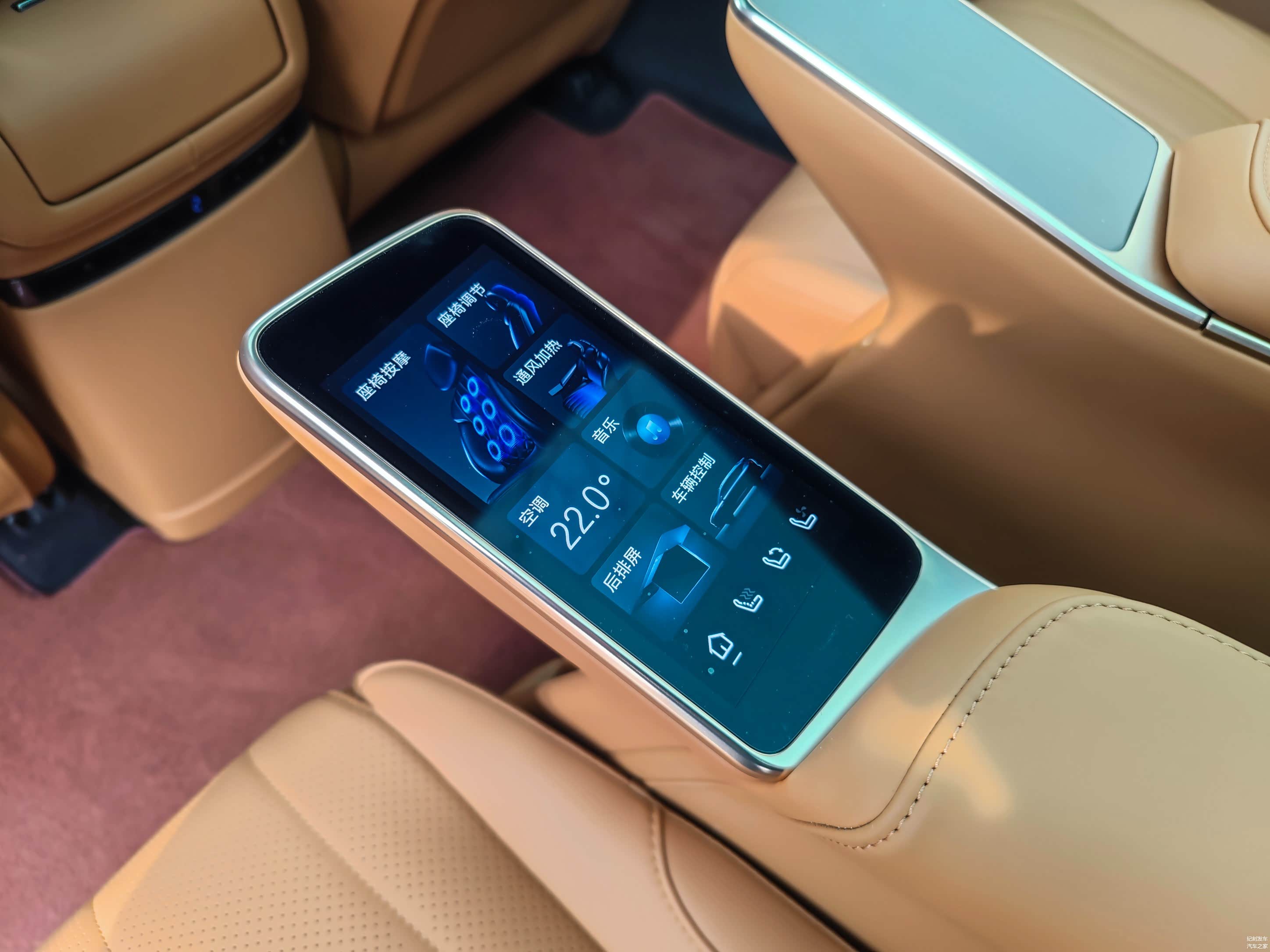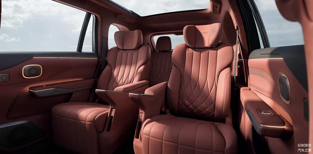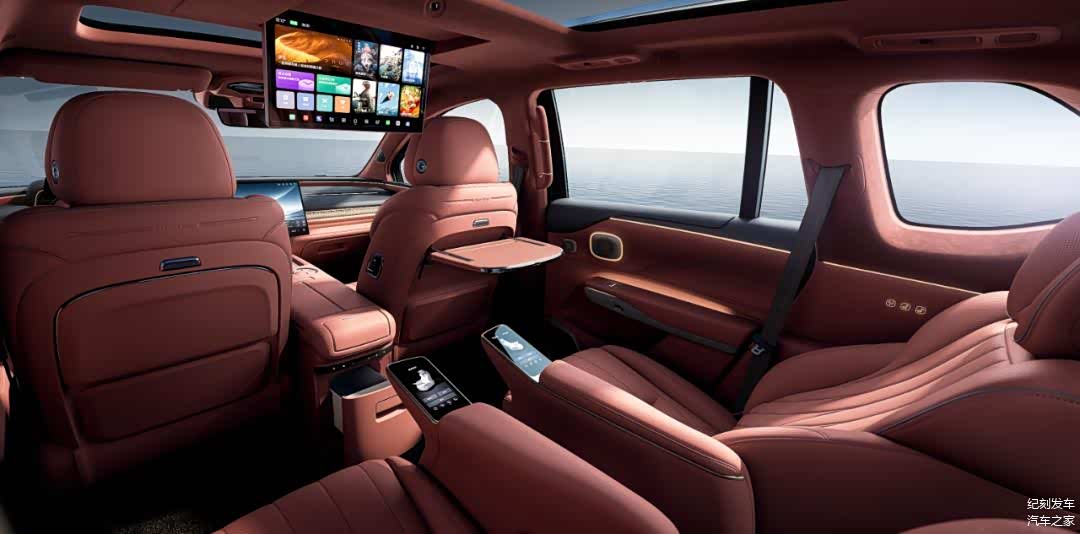 昊铂HL提供五座和六座两种布局,其中,六座版车型二排座椅均支持零重力模式,并带有电动脚托,座椅支持127.5°的大角度调节,还具备18点按摩及热石理疗功能。娱乐功能配置方面,二排配有17.3英寸的娱乐屏,同时新车还配有冰箱。此外,座舱还提供了23扬声器杜比全景声音响系统,功率达2360W。