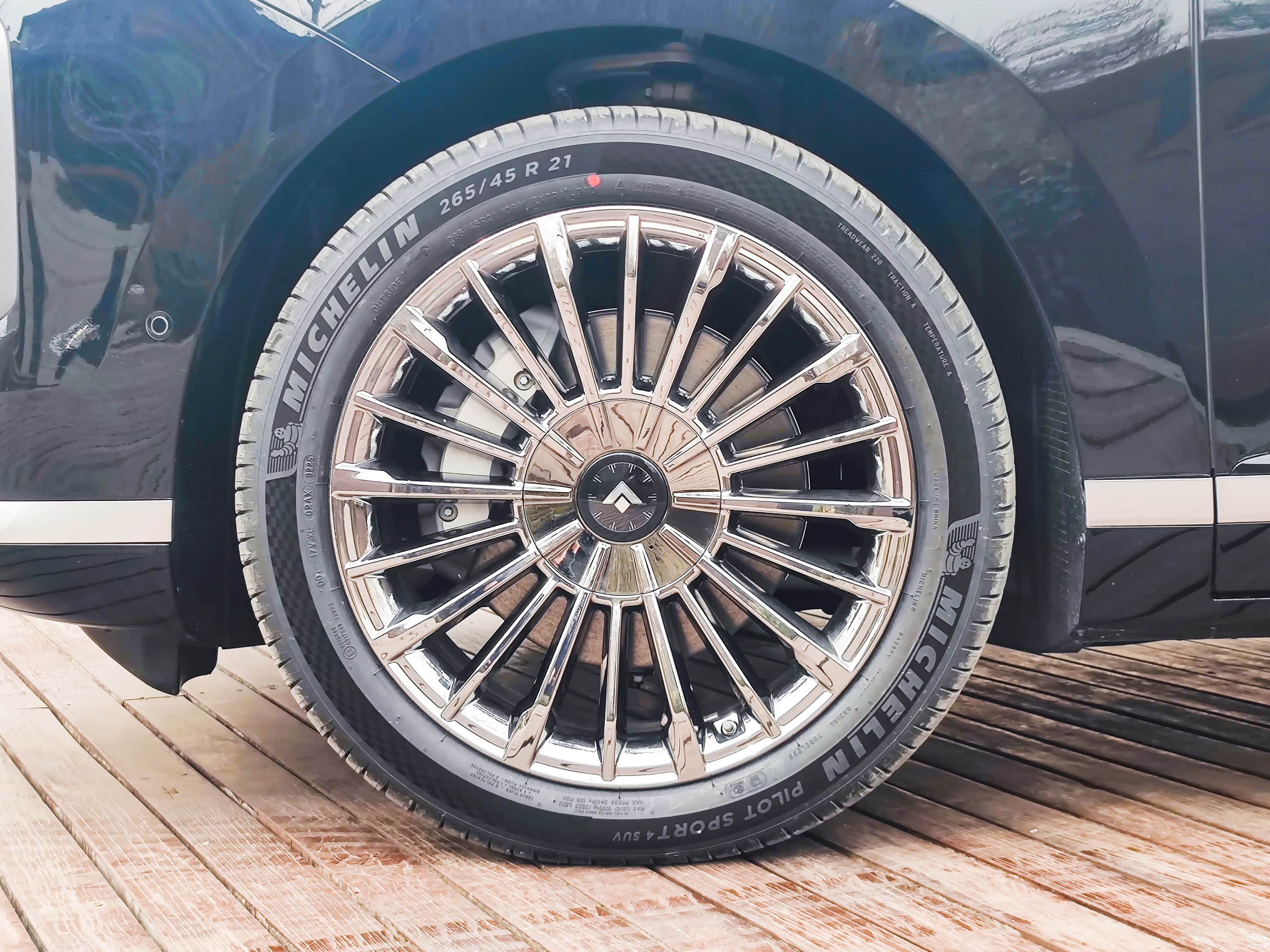 侧面来看,昊铂HL的整体造型敦实饱满,大尺寸的多幅式轮毂造型也很有豪华感。车身颜色方面,新车提供航海蓝、深海绿、冰岩灰、夜影灰共计4种颜色选择。尺寸方面,新车长宽高分别为5126/1990/1730(1750)mm,轴距为3088mm。