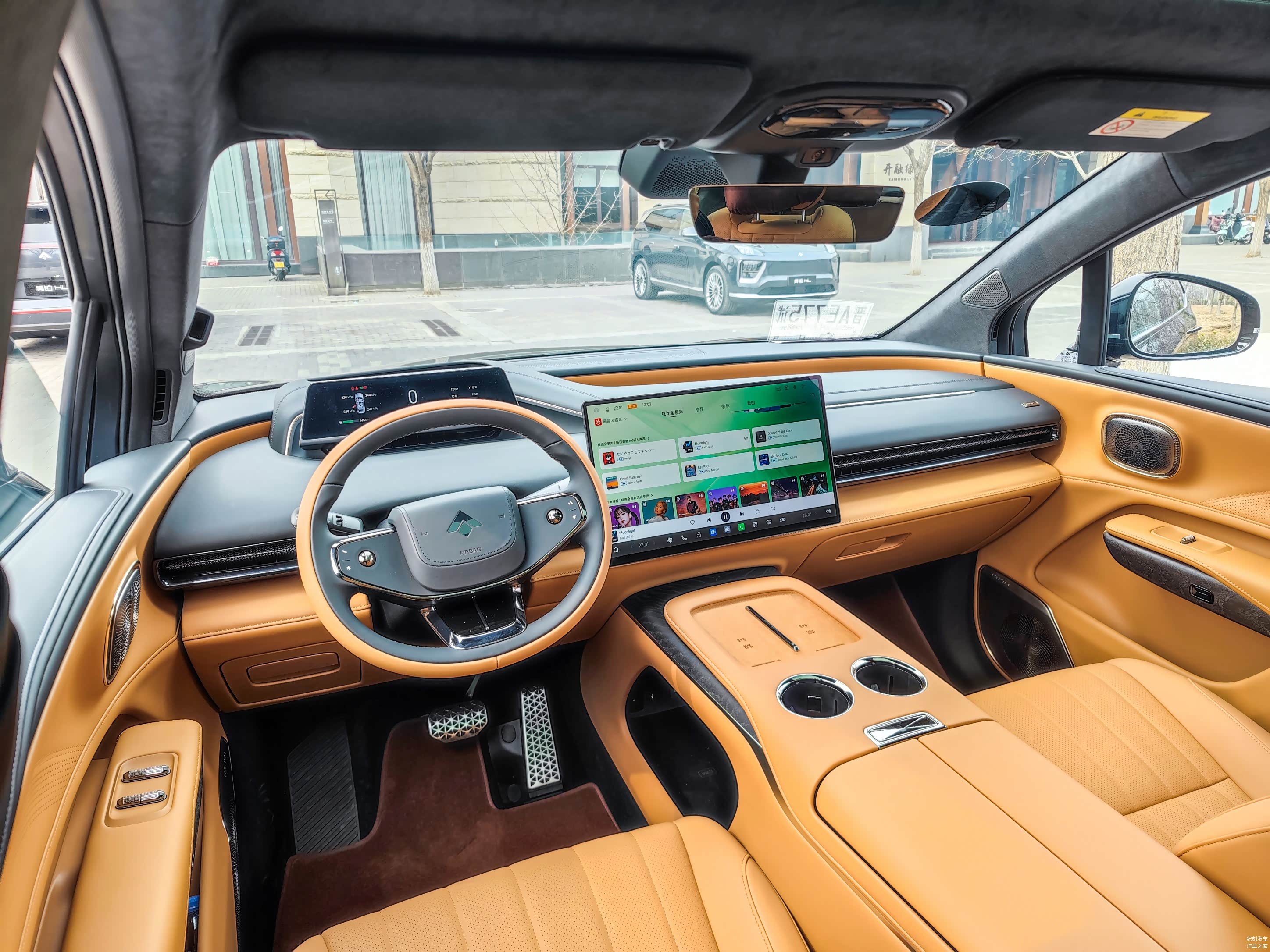 内饰方面,昊铂HL座舱采用了大面积的软性皮质覆盖,其中座椅采用的是Nappa真皮面料、门板区域采用Alcantara麂皮包覆,整体座舱档次感表现突出。中控区域,昊铂HL配备了17.3英寸的中控屏,车机内置了8295芯片、ADiGO 6.0 AI智能座舱以及端云一体AI大模型。此外,新车还提供了27英寸全景HUD抬头显示系统,其人机交互表现可圈可点。