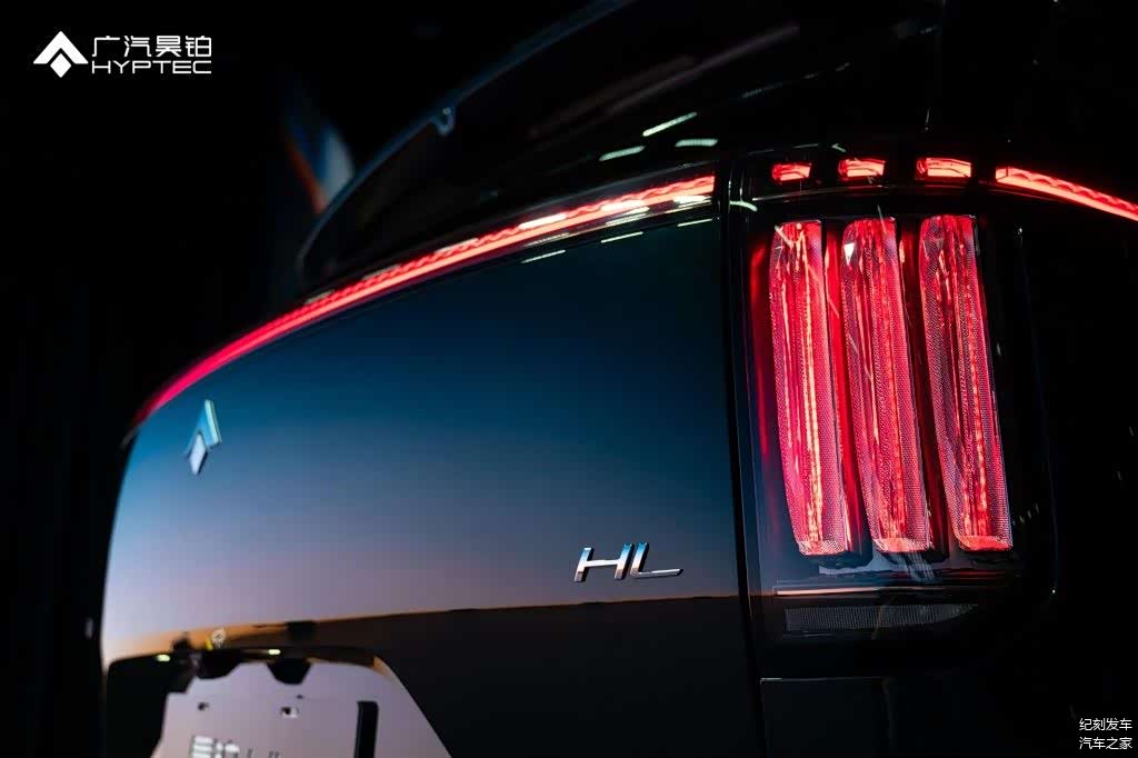 车尾部分,昊铂HL的设计比较简约,新车配有贯穿式的尾灯组,灯组两侧同样采用了三条纵置灯带的布局,这点和前脸相呼应。此外,新车尾部上方采用大尺寸扰流板造型,进一步提升了车辆运动感。