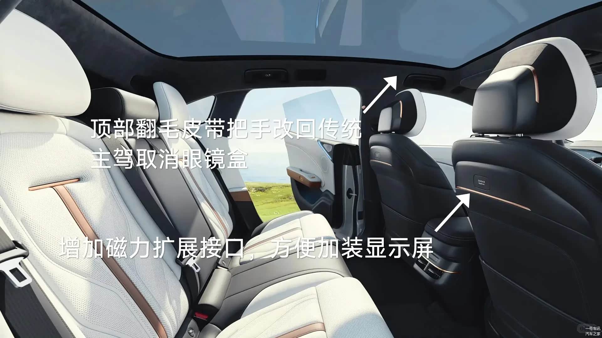 在内部装饰上,这款新车在三厢版的基础上做了进一步的升级,搭载了与极氪7X相似的三辐方向盘,设计为平底,并在上方配有金色的回正标志,营造出了一种相当运动的氛围。车辆内部装备了一个圆弧形状的全液晶仪表盘和一个大型的中控屏,而在屏幕的下方则设置了一系列的物理按键,以便于进行常规的功能操作。除此之外,中控台的下部还配备了007GT的金属标牌和两个杯架。在配色上,这款新车提供了浅米和深红两种选择,并且对中央通道的扶手箱进行了进一步的优化和调整。