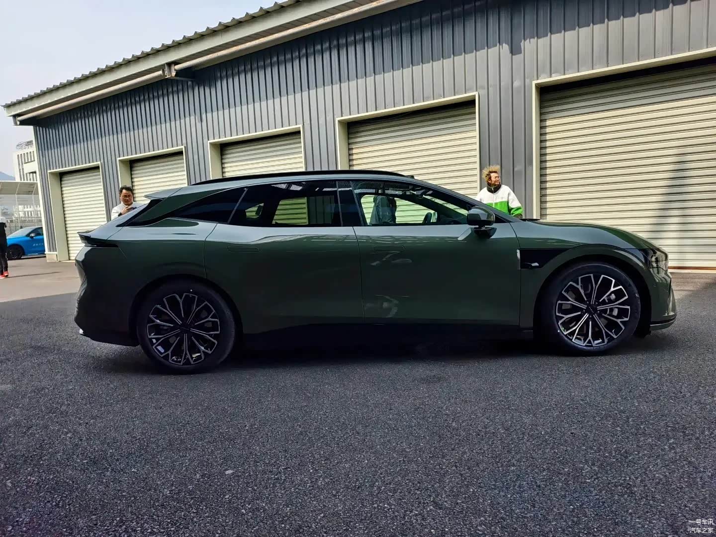 从车身的侧面看,这款新车展现了经典的猎装车设计风格,其流畅的车顶曲线在B柱的后部逐渐下压,与车身的优雅比例相结合,形成了一种即将爆发的感觉。在细节设计上,D柱位置的贯穿腰线与熏黑装饰条相交,为新车带来了一种仿佛悬浮在空中的视觉体验,使其显得更为独特。车顶上方还安装了一台瞭望塔激光雷达,这意味着它可以提供高级的驾驶辅助功能。根据之前的信息,激光雷达很可能会成为全系的标准配置。