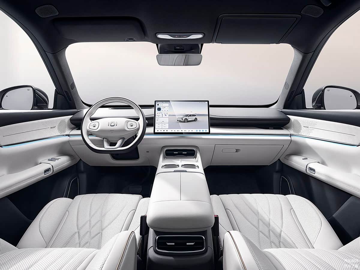 再来便是新车的内饰,进入车内,可以看到,新车的前排视觉线条规整,AR - HUD与15.4英寸中央“向日葵”可旋转显示屏的组合,科技感满满。平底式多功能方向盘握感舒适,操作便捷,怀挡式换挡杆节省了空间,让中控台更加简洁有序。此外,该车还具备同级最大后排空间,且后排座椅支持电动调节、通风加热,为乘客提供了极致的舒适体验。