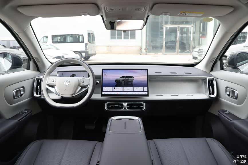 内饰方面,整体设计非常简洁,车内未配备任何实体按键,采用8.8英寸的全液晶仪表+14.6英寸的悬浮式中控屏。车机芯片是8295P,支持3D灵动桌面、智慧卡片、华为HiCar+Carlink投屏生态等。另外,车机系统还引入了AI语音大模型,并深度融合通义千问和DeepSeek大模型。