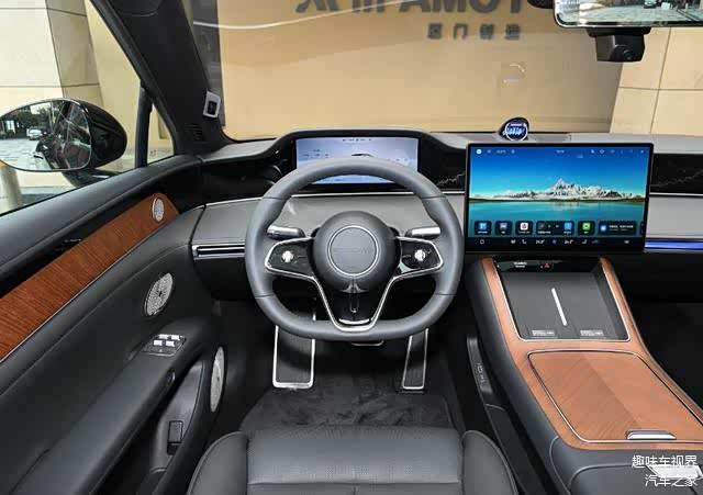 进入车内,享界 S9 增程版的内饰设计令人眼前一亮,提供松露棕、白沙杏、琥珀棕和极夜黑等多种选择。前排采用 “星环双露台” 设计,将 12.3 英寸液晶仪表、15.6 英寸中控屏以及两侧智能电子外后视镜显示屏巧妙地连接在一起,营造出极具科技感的驾驶舱氛围,车机系统采用 HarmonyOS 4,具备超级桌面 2.0、音视频会议自由双向流转、Maglink 平板联动、自定义屏保、超级隐私模式和专属账号功能等。全新升级的方向盘造型,握感更加舒适,为驾驶者带来更好的操控体验。