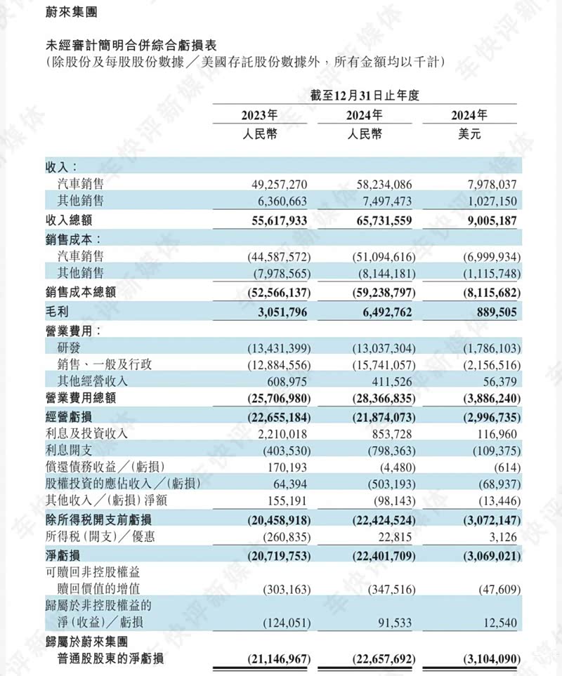 从以上数据不难看出,在2024年无论是销量还是营收蔚来汽车都是朝着好的方向发展。与此同时,蔚来汽车的亏损也在进一步加大。