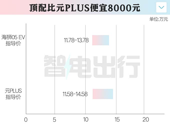 海狮05 EV官方售价区间11.78万-13.78万,顶配比王朝网的元PLUS便宜8000元。
