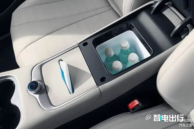 海狮05 EV车内配备8.8英寸液晶仪表+12.8英寸旋转中控屏+DiLink 100智能座舱;还提供前备箱、50W无线充电面板、车载冰箱、全景影像。