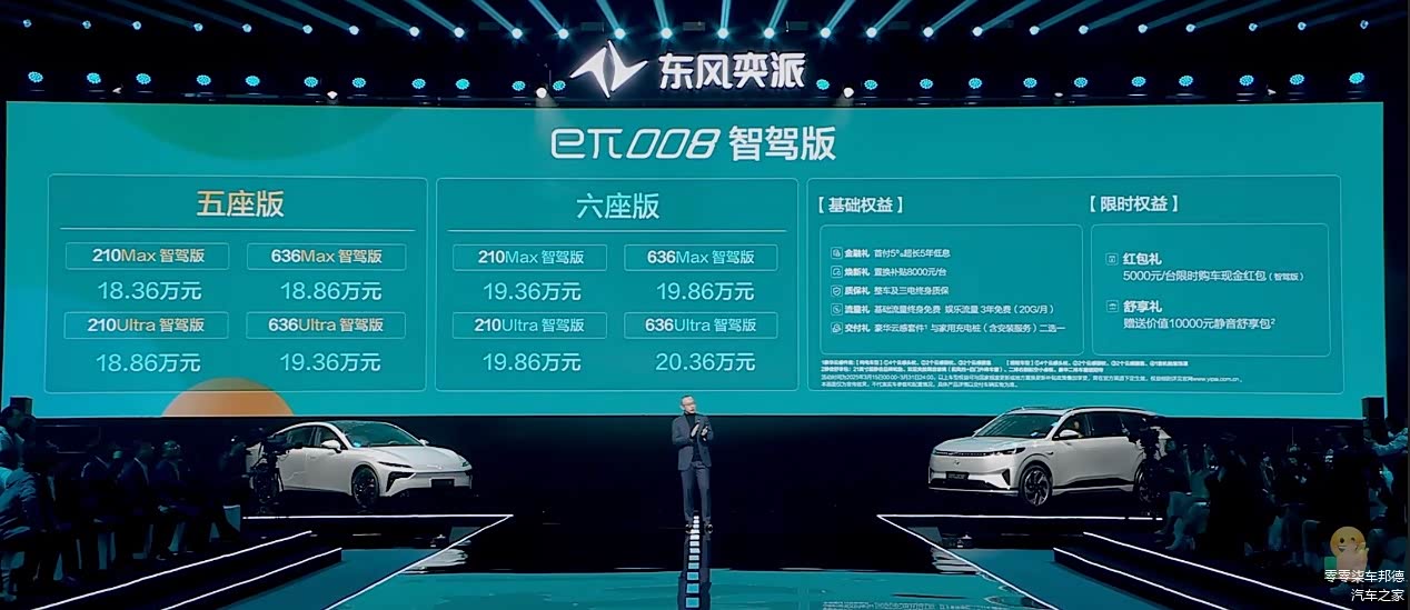 2025年3月14日,东风奕派正式推出全新升级的新款eπ008智驾版,官方售价为18.36-20.36万元。作为年度改款车型,新车在保持原有价格体系基础上,全系标配高阶智驾系统,成为20万级中大型新能源SUV市场的重磅选手,毕竟智驾系统已成为现在消费者选择时非常看重的一环,那么新车具体变化在哪,这款车用车成本如何呢?