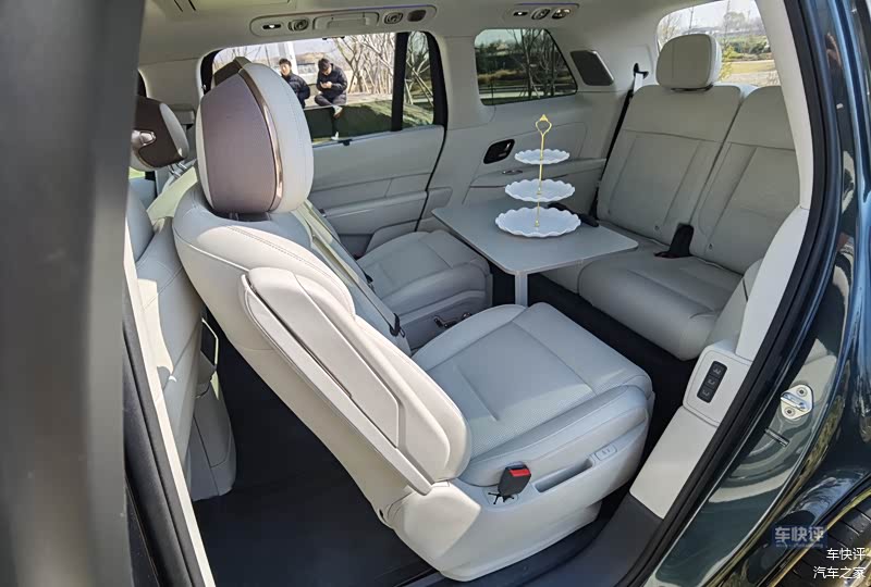 你可能会觉得两块30英寸的大屏幕和双8295芯片就是领克900最大的卖点了,但实际情况并非如此。领克900还有一个“独门绝技”,那就是第二排座椅不仅有着550mm的超长滑轨,同时还可以180度旋转,让车内秒变商务会议室或者是娱乐棋牌室,这实用性就连MPV车型见了也都会自叹不如。