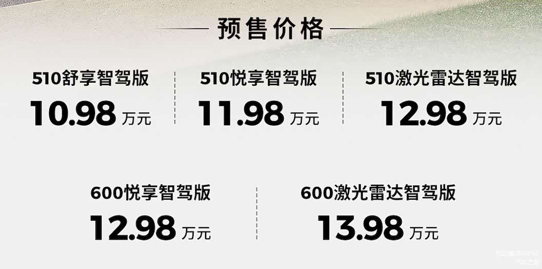 通勤党:510 舒享版(10.98 万)续航够用,智能基础功能全配齐;科技控:510 激光雷达版(12.98 万)硬件一步到位,未来 OTA 无限可能;续航焦虑患者:直接上 600km 版本,实测能跑江浙沪小环线。