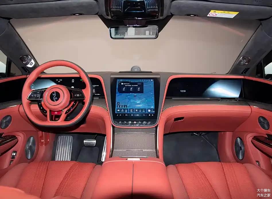 中控台的设计是对称的,与12.8英寸的曲面大屏幕、23.6英寸的液晶仪表和副驾娱乐屏相结合,再加上AR-HUD的抬头显示,共同营造出一种浓厚的科技和时尚氛围。在细节设计上,这款新车融合了镀铬设计和碳纤维/枫木饰板,再加上双拼的配色策略,使得车内装潢显得更为精美和奢华。当谈到乘坐的舒适度,仰望U7为消费者提供了4座与5座两种不同的座位布局选项。