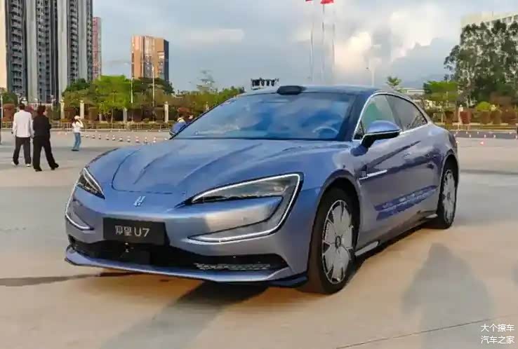 从车的侧面看,抬头看U7,它呈现出一种矮小的姿势,其溜背的设计和流线型的车身线条,都让人感觉到它随时都准备冲刺。