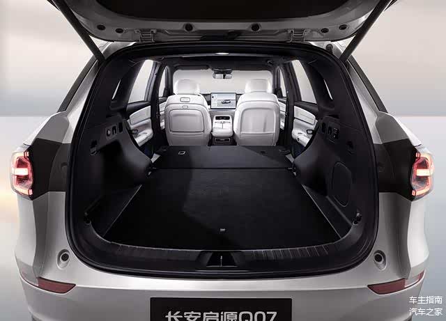 启源Q07定位是中型SUV,虽然长度只有4837mm,宽度和高度分别是1920mm、1690mm,但车身轴距达到了2905mm,作为参考,理想L6长度是4925mm,轴距是2920mm,启源Q07虽然体积不算很大,但是内部空间绝对够宽敞,全系采用大五座布局,第二排拥有纯平地台。