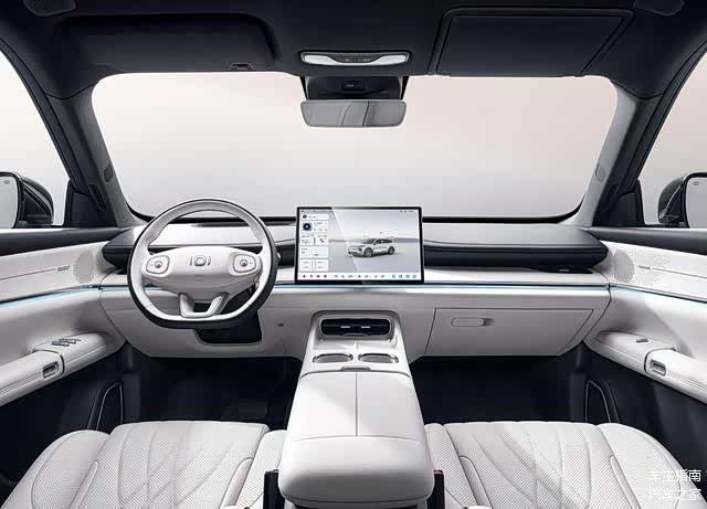 内饰设计同样简约,车内看不到太多的物理按键,中控台中央是一块15.4英寸的2.5K悬浮式中控屏幕,除入门版外,其他配置版本均搭载了向日葵旋转屏,支持左右偏转15度。车机内置骁龙8155芯片,匹配天域OS系统,接入DeepSeek应用,全系标配4区域语音识别,除入门版外还搭载了49英寸AR-HUD增强现实抬头显示系统,最顶配版本拥有12.8英寸副驾吸顶屏。