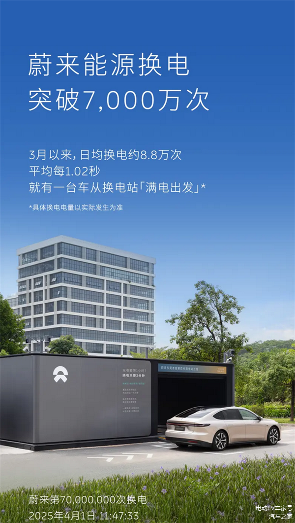4月1日消息,蔚来宣布换电次数突破7000万次,3月以来日均换电约8.8万次,平均每1.02秒就有一台车从换电站满电出发。换电累计为用户提供电量超37亿度,相当于为超185万个家庭提供一年的用电量。用户所获得的电量补给中,近六成来源于换电。相较公共充电,换电累计为用户节约时间约5820万小时,平均每位用户多省了124小时。相较同级别燃油车,换电累计为用户节约补能费用约183亿元,平均每位用户多省了3.9万元。