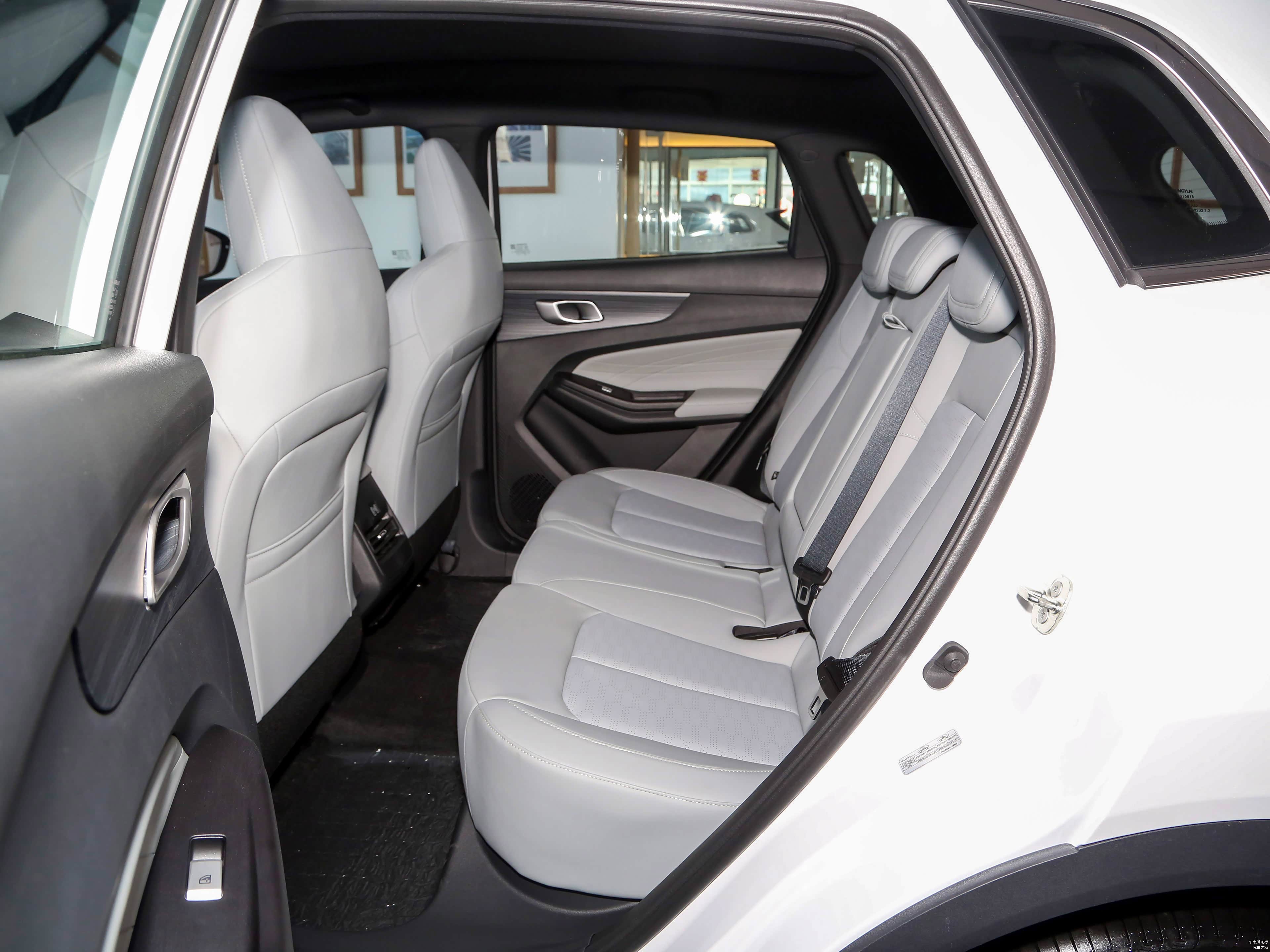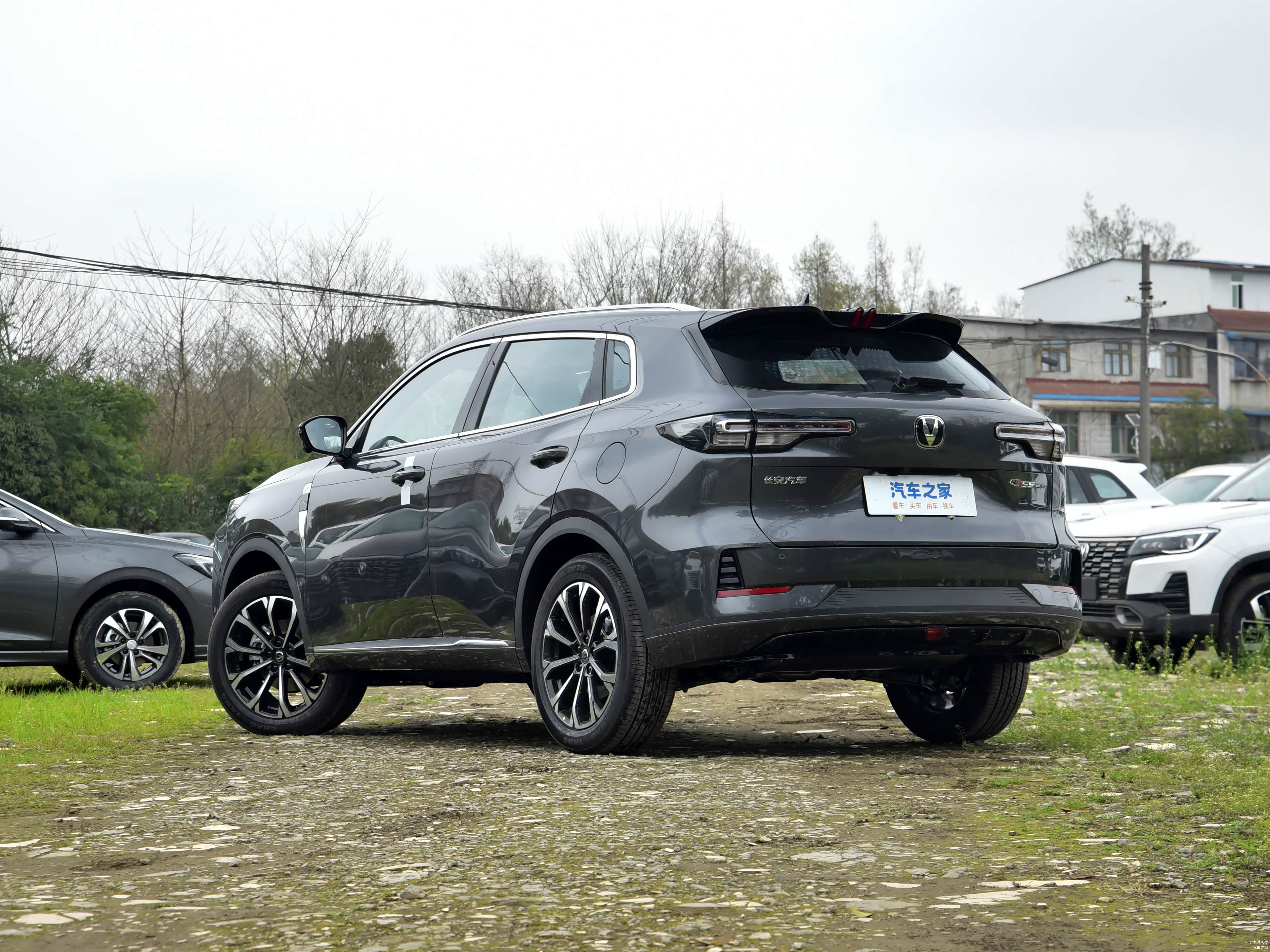 侧面采用有机切削型面设计,塑造出干练车身姿态,前后两段式腰线错落分布,带来丰富的型面变化,标配19英寸双五幅式轮毂,轮胎规格225/55 R19,尾部圆润简约,车顶配有大尺寸扰流板,星环LED尾灯组尺寸不大,不过辨识度挺高,采用隐藏式排气布局,这是插混版本跟纯燃油版外观的最大区别所在了。新车提供月光白、炫动红、炫影灰、原子灰、星钻黑等五种车身配色供选择。