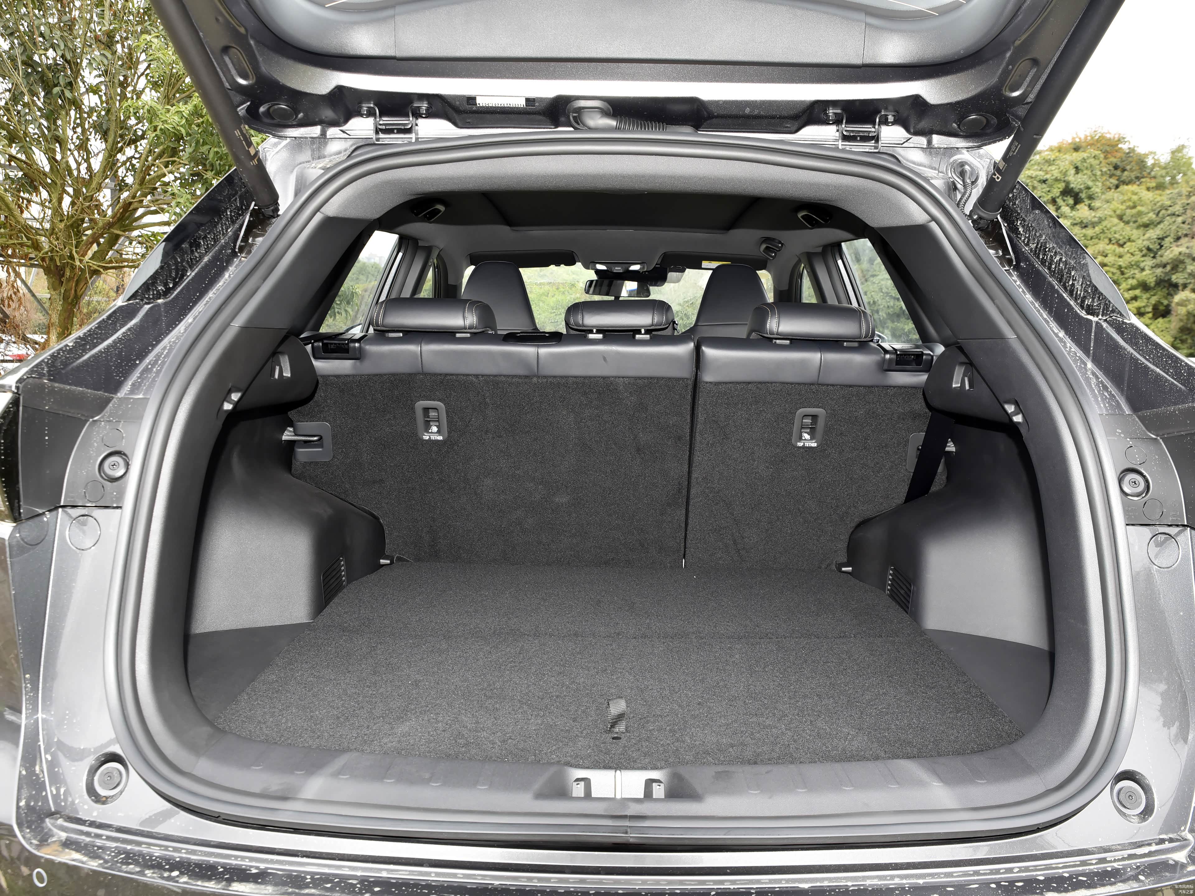 车身尺寸方面,新车长宽高分别为4539×1865×1680毫米,轴距2656毫米,身高176厘米体验者坐在前排,将座椅调到最低状态,头部的剩余空间还有1拳多,保持前排座椅不变,坐在第二排头部空间还剩1拳左右,腿部空间刚好2拳,整体空间表现不差,后排地板中间略微有点凸起,基本上不影响。后备厢常规容积475升,能放下1个28寸、1个24寸和2个20寸行李箱。还能再塞进一些背包等行李。换成20寸行李箱,放5个没问题,满载5人,能放下全车人行李。后排座椅可以按照比例放倒,全放倒之后,最大容积能扩展到1415升。最大纵深超过1.7米。车内储物空间丰富,门板、中央杯架、手套箱,后排杯架、中央扶手箱甚至中央扶手下方的镂空区域都提供有储物空间。可容纳不少随身携带的零碎物品。