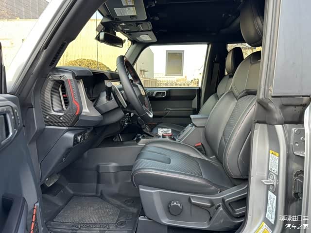 标配 中级包,高级包,模块化前杠带RIG雾灯,金属后杠,挡泥板挂紧钩,灰/黑拼色进气格栅,全底盘金属护板,前大灯自动远光LED,带标志LED大灯,加强旋启式后门,可拆卸防石击护杠,脚踏板,拖车钩前2后2,一键升降车窗,60/40折叠式后排座椅,带预接线的辅助开关,手套箱,LTHR挡位旋钮,MOLLE皮带系统,12v电源插座,运动真皮方向盘,拨片换挡,12寸LCD触屏,360度环车影像,FORDPASS-连接4G热点远程信息处理器,前后门锁同时开启关闭,坡道缓降辅助,HOSS 4.0 悬架,FOX可调阻尼减震,预碰撞辅助系统,猛禽工具箱,天狼星系统,G.O.A.T模式,37X12.5R17 A/T百路驰全地形胎,多片式可拆卸硬顶及消音顶棚,前排顶板储存袋,铺装式脚垫,无钥匙进入