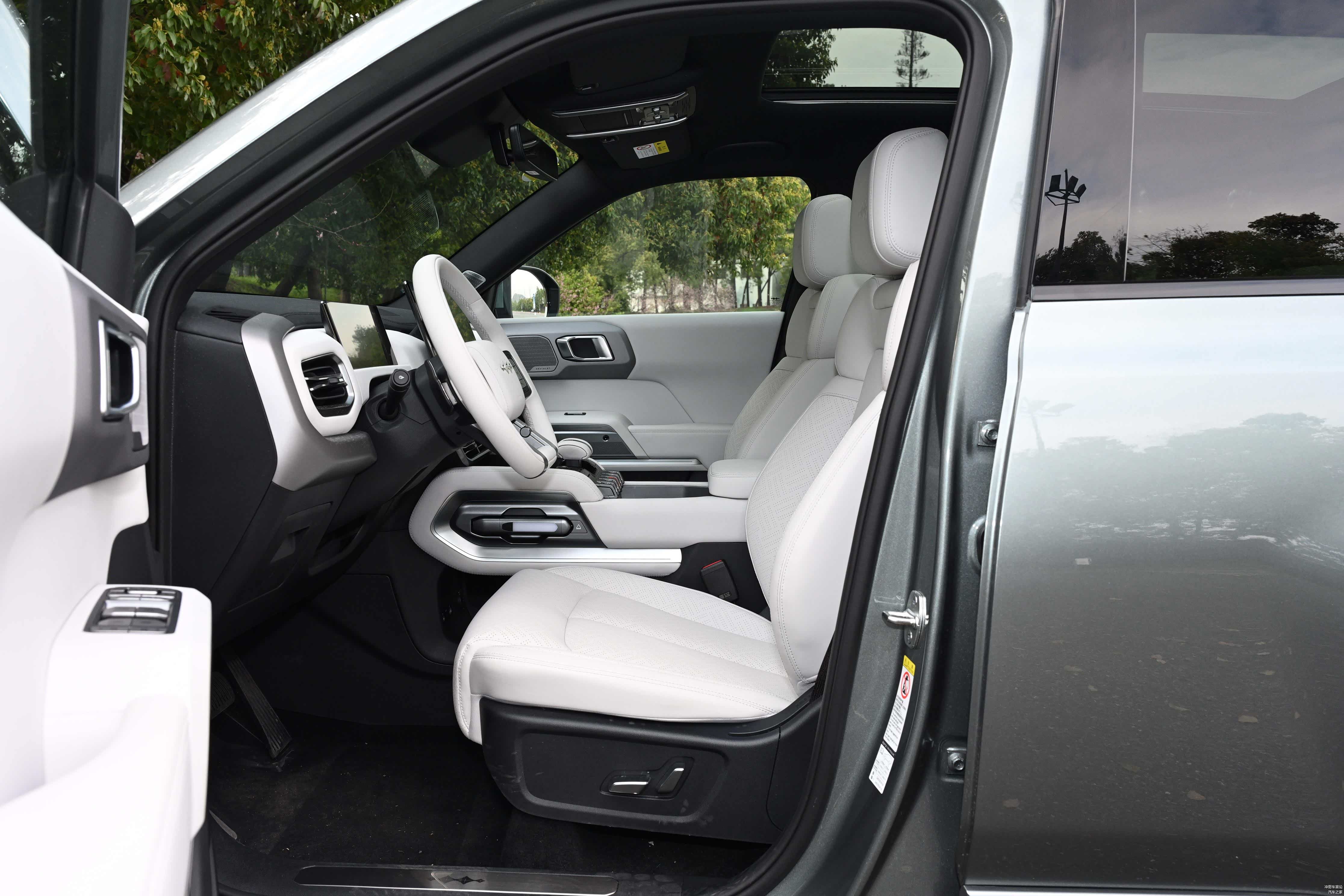 智能配置方面,全系标配 50W 无线充电、手机互联映射及车载冰箱,冰箱支持加热 / 冷藏 / 冷冻三模式,满足多样化储物需求。主驾配备电动腰托调节,副驾提供老板键功能,进一步优化乘坐姿态。车内采用多层隔音玻璃与主动降噪技术,有效隔绝外界噪音,搭配多色氛围灯与可开启全景天窗,营造出温馨舒适的车内环境。
