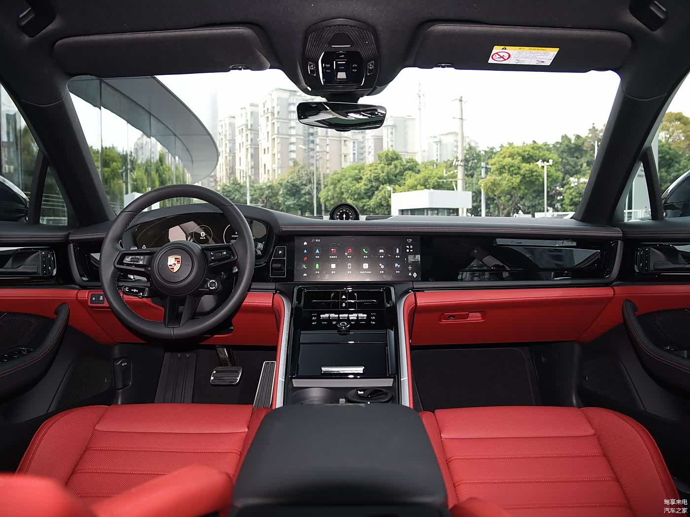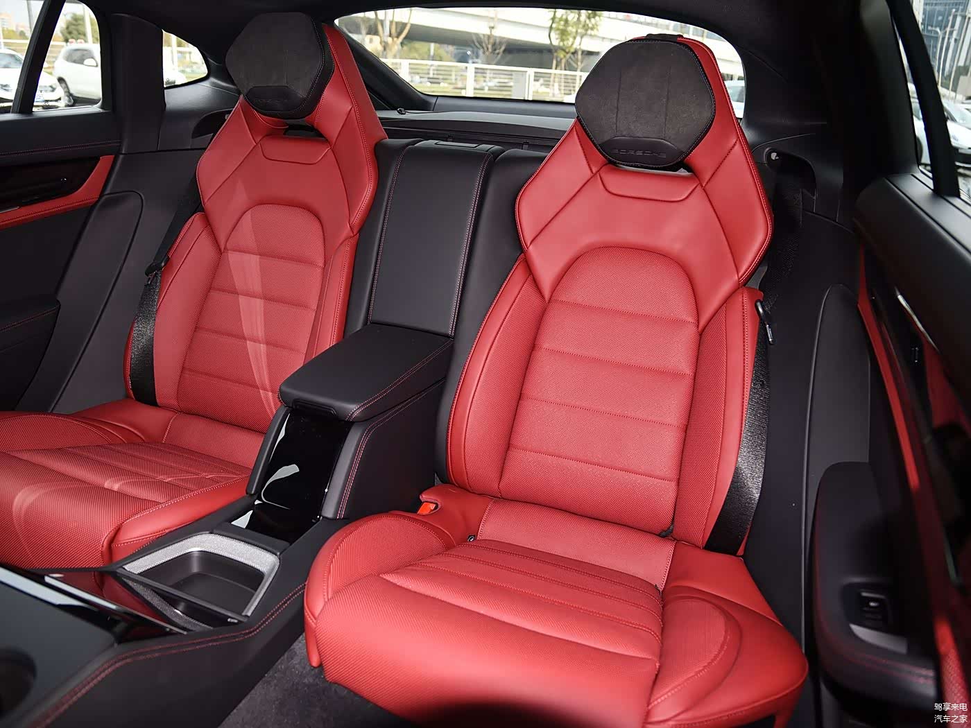 Panamera新能源的T字形布局相对比较常规,但胜在比较经典,除了大面积覆盖真皮材质,还加入了带纹理的饰板,用料也比较高档,整体还是传统燃油车的风格。全系提供4座布局,采用一体式真皮运动座椅,前排座椅支持腰部支撑、腿托调节、加热、通风功能。后排2个独立座椅支持电动调节、靠背调节、腰部调节、腿托调节、加热、通风功能,全系座椅的按摩功能都需要选装。中低配车型提供的是14扬声器BOSE音响,高配版本提供21扬声器柏林之声音响。