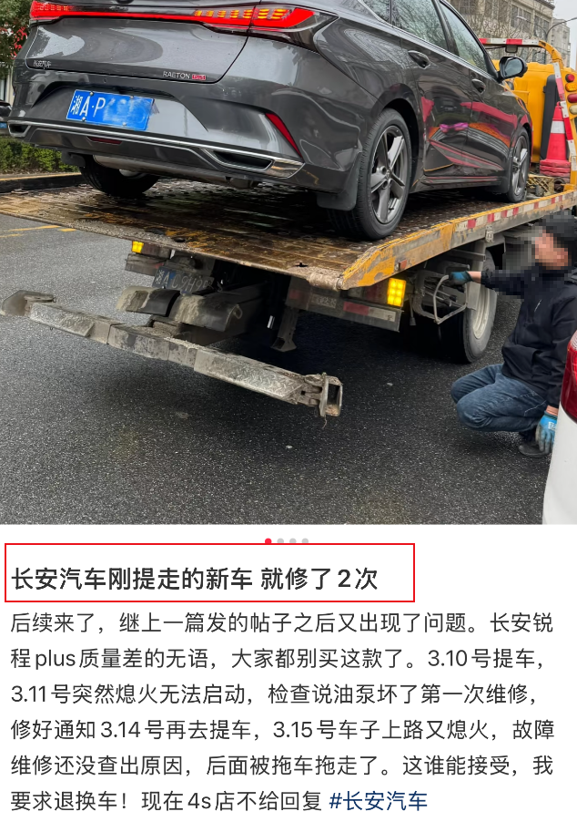 一位长安锐程PLUS车主反映:刚提车的新车,熄火两次。