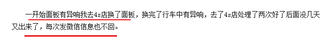 中控面板异响,在店内维修两次未解决问题,工作人员回复消息不积极。
