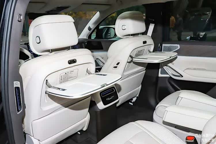 和领克900、理想L9尺寸接近,这台腾势N9车长超5米2,轴距超3米1,全系6座布局,副驾提供零重力座椅,2排独立座椅带拖托,配备了大尺寸吸顶屏,带升降功能26个扬声器的帝瓦雷音响,智驾层面用的则是天神之眼B-高阶智驾激光版。
