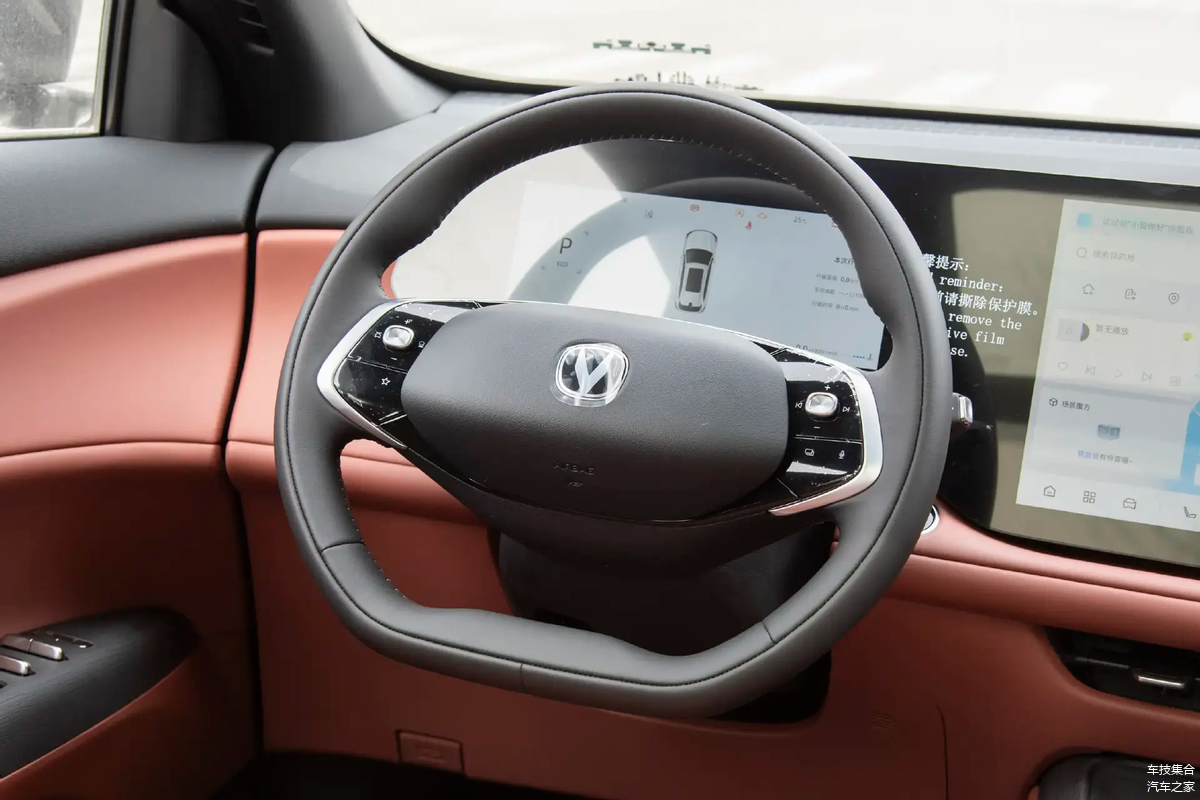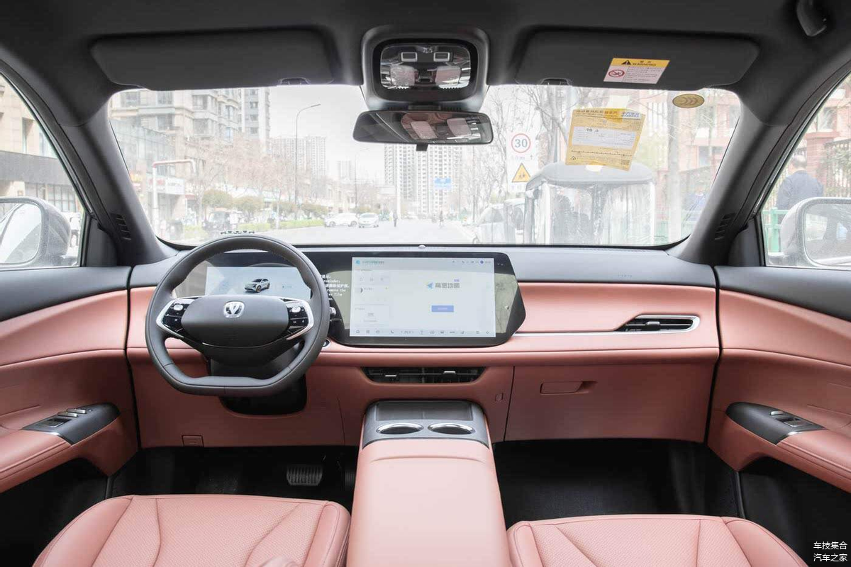 CS75 PLUS内饰采用了环绕式撞色装饰,双辐式平底方向盘带有电子怀挡,其前端则是10.25+14.6英寸双联屏,带有15W无线充电板的扶手箱完成了下掏空与中央贯穿;而座椅、门板扶手等区域则采用了仿皮,前者还支持前排电动调节与加热、二排靠背手动调节。