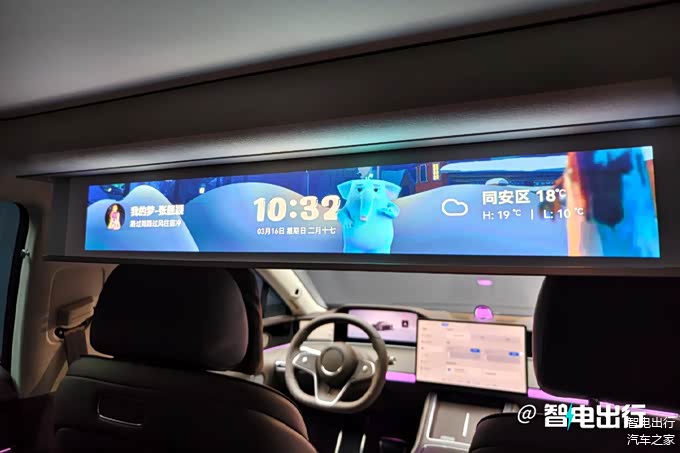 车内也非常听劝,新方向盘造型更常规,握持感更舒适。车机增加3D建模,渲染精度很高,车窗和后备箱都支持无级调节。后排投影幕布增加了悬浮窗功能,可实现悬停四分之一,这样既不挡住前方视野,还可显示时间、音乐和导航信息,后门打开也有安全提示。另外投影完全展开后亮度和清晰度都有升级了。