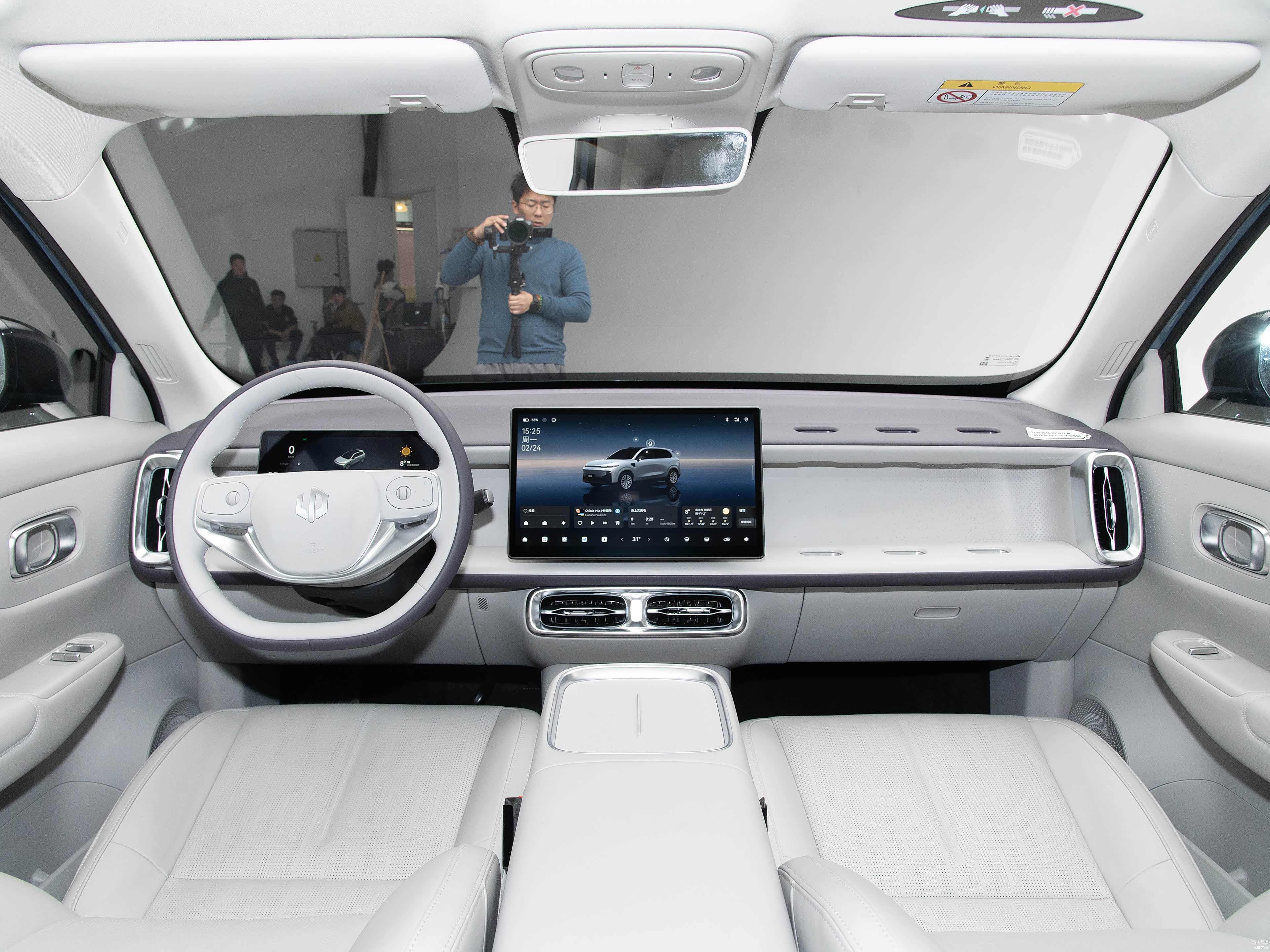 车内采用双色双辐方向盘和怀挡设计,座椅使用竹炭纤维面料,主驾座椅配备通风功能,前排座椅头枕可拆卸并支持180度放平。全景天幕面积1.83平方米,配备电动遮阳帘,音响系统包含12个扬声器。后备厢采用双层结构,常规容积420升,后排座椅放倒后可扩展至1415升。