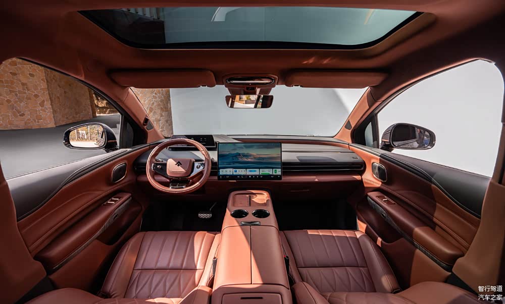 内饰方面,全车座舱采用Nappa真皮及Alcantara麂皮包覆,提供2+3式五座和2+2+2式六座两种座椅布局。副驾后侧座椅带有4向电动腿托,六座车型第二排配备双零重力座椅。全系标配双50瓦手机无线充电面板、24扬声器ADIGO SOUND音响。中高配车型配备车载冰箱,顶配车型还具备智能发光触控按键功能。
